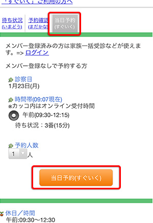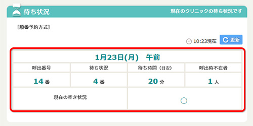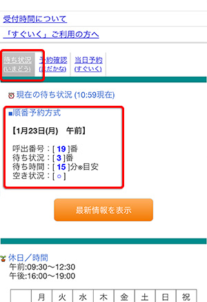当院では順番待ち予約システムを導入しています。待ち時間を有効に活用していただける混雑状況確認システムです。
