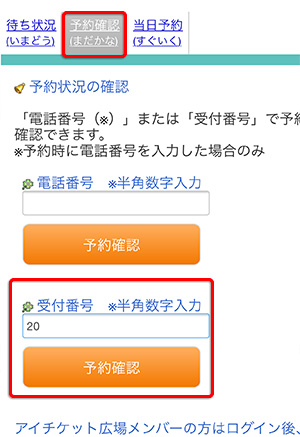 待ち時間はおおよその目安ですので、適宜順番を確認の上、順番に遅れないよう余裕を持ってお越し下さい。
